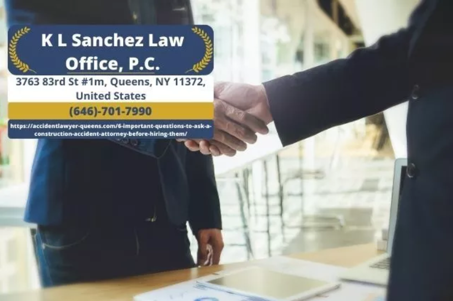Queens construction accident lawyer Keetick L. Sanchez (https://accidentlawyer-queens.com/6-important-questions-to-ask-a-construction-accident-attorney-before-hiring-them/) of KL Sanchez Law Office recently released an article outlining six crucial questions individuals should ask before hiring a construction accident attorney. The article is aimed at helping individuals who have experienced a personal injury due to a construction accident to navigate the process of finding the right lawyer for their case.