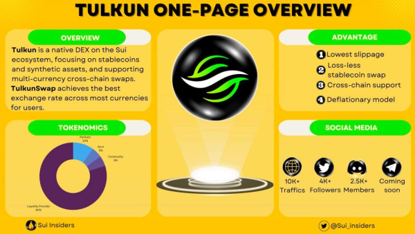 Tulkun Finance is a decentralized finance platform that provides users with access to a wide range of financial products and services. It is built on the Ethereum blockchain and is designed to be secure, fast, and reliable. Tulkun is a native DEX on the Sui ecosystem focusing on stablecoins and synthetic assets, and supporting multi-currency cross-chain swaps.